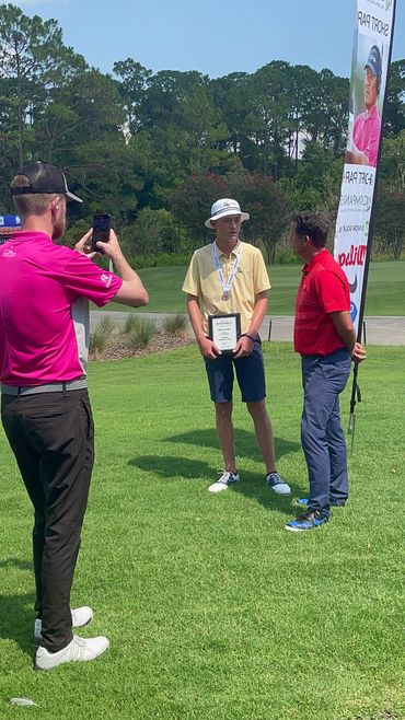 As soon as I could stand, I had a golf club in my hand. My first memory of playing golf is picking up plastic clubs and whacking plastic golf balls around my house. I would set up putting challenges under chairs in my living room. At five years old I entered my first US Kids tournament with my grandfather carrying my bag. Once I won my first tournament, I knew I was hooked on the competitive nature that golf brings out of me. I haven’t stopped playing tournaments since.