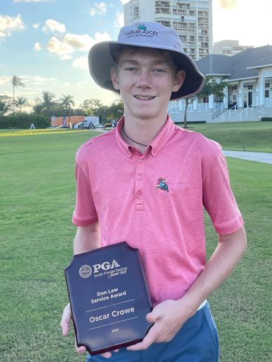 South Florida PGA has awarded Oscar Crowe with the Don Law Service Award is awarded to an individual for their effort to serve the community. Oscar Crowe has been awarded this prestigious award for his contribution to the Birdie Club.
