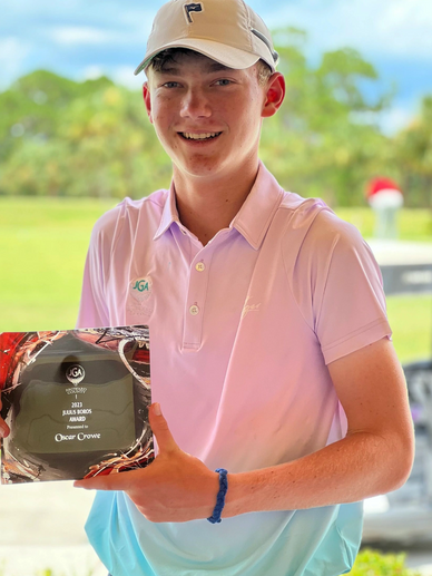 At the conclusion of each JGA season, an award is presented to the individual with the lowest scoring average across the entire summer season. This year, Oscar Crowe received the Julius Boros award for the third consecutive year, as he recorded the lowest scoring average this season of JGA of Broward County. With a scoring average of 70, Oscar had a few low scores this season, with two 68's and a 70 across the 7 event season. "I think that this award means more than just having low scores, it shows the consistency that I've had this season along with the ability to come out each week and try my best. I feel very fortunate to be apart of this tour as I feel I have made some really great friends and met some great people. I think that although JGA may be a smaller tour, its purpose speaks for more than its size in how it allows junior golfers from around the area to play competitively at a more accessible rate and in a fun environment."