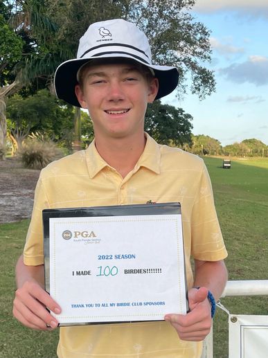 During the 2022 South Florida PGA season, Birdie Club member Oscar Crowe made 100 Birdies raising $900 for the South Florida PGA Foundation. As a Birdie Club member, Oscar engaged donors to pledge a monetary contribution to the South Florida Foundation for every birdie he made. Through Oscar’s birdie accomplishment his donations went to support organizations like, PGA Hope, Habitat for Humanity, SFPGA Foundation Scholarship, Smiling Fore Life and SFPGA Junior Tour.
